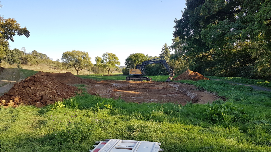 Mit dem Projekt Dorfteich ging es am 17. September 2020 los. Der Teich war schnell ausgehoben und dank des Bachwassers bald gefüllt.