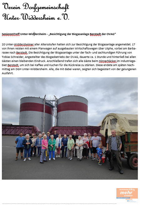 Von den rd. 70 Unter-Widdersheimer Seniorinnen und Senioren nehmen rd. 20 regelmäßig an den monatlichen Treffen teil und sind begeistert von dieser Einrichtung.