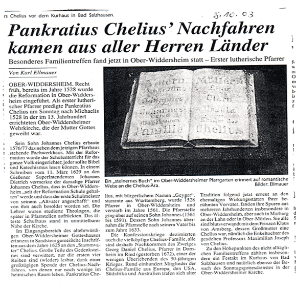 An der Kirche in Ober-Widdersheim ist ein kleines Denkmal zur Erinnerung an die Familie Chelius in Form eines aufgeschlagenen Buches aus Marmor aufgestellt.