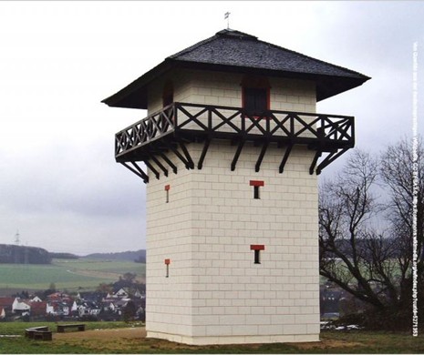 Fotomontage Arthur Schneider: Burg mit Wachturm (ein einzelner Turm ist eher unwahrscheinlich)